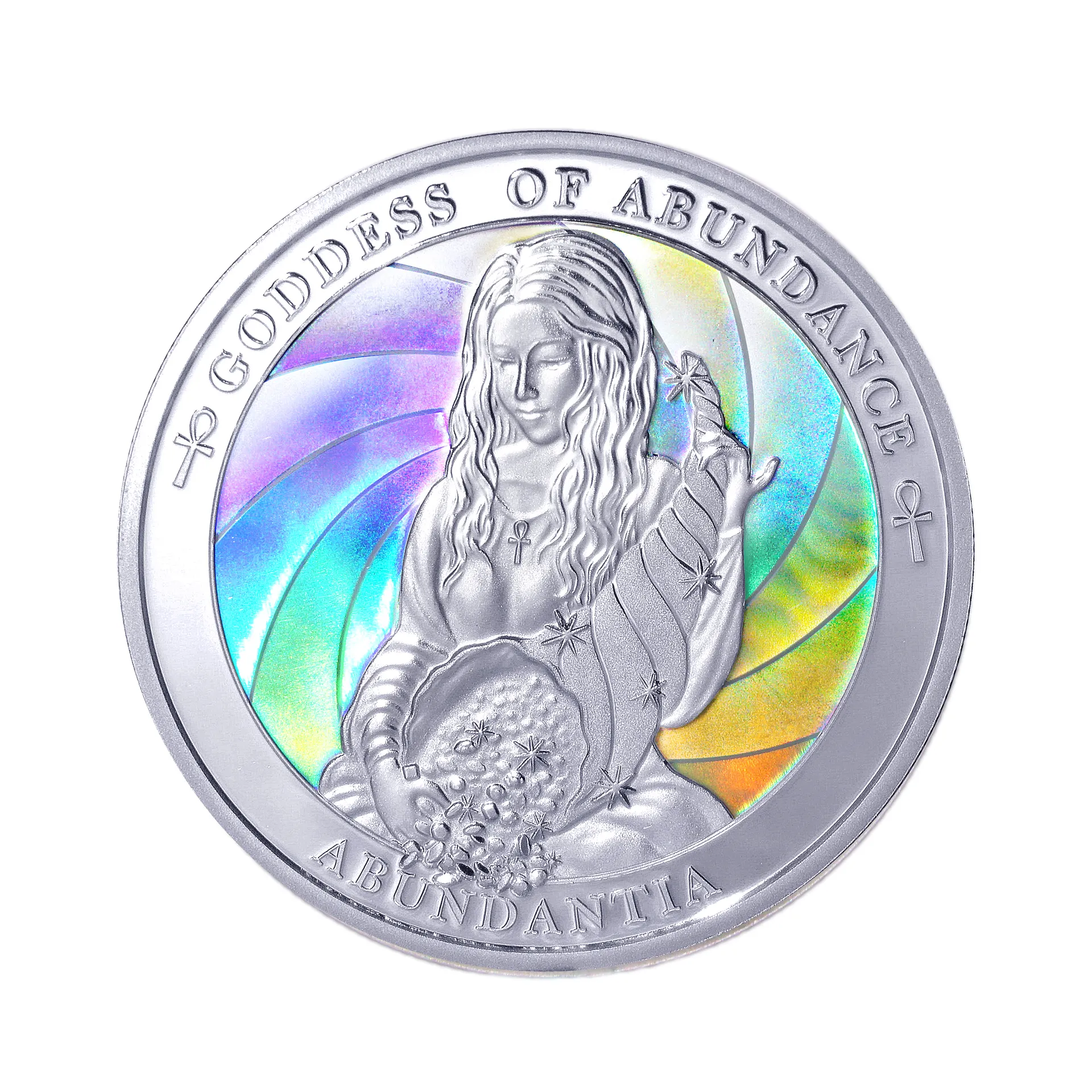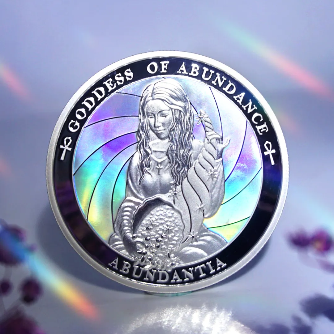 白银是最连结丰盛和女神能量的金属之一。会散发非常高频的灵性频率,在全宇宙是物质与灵性层面的丰盛象征,和神圣本源有非常紧密的连结。这款银币蕴含多种女神元素,能协助锚定更多的女神能量到地表世界。银币中炫彩采用雷射折射雕刻技术,不使用镀料或涂料进行上色,让纯银的女量能量能更纯粹的呈现。