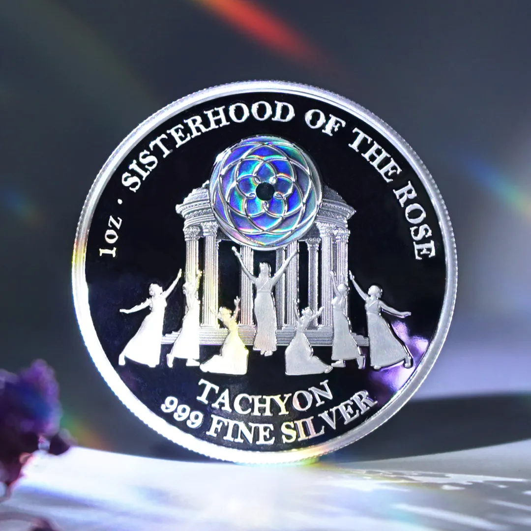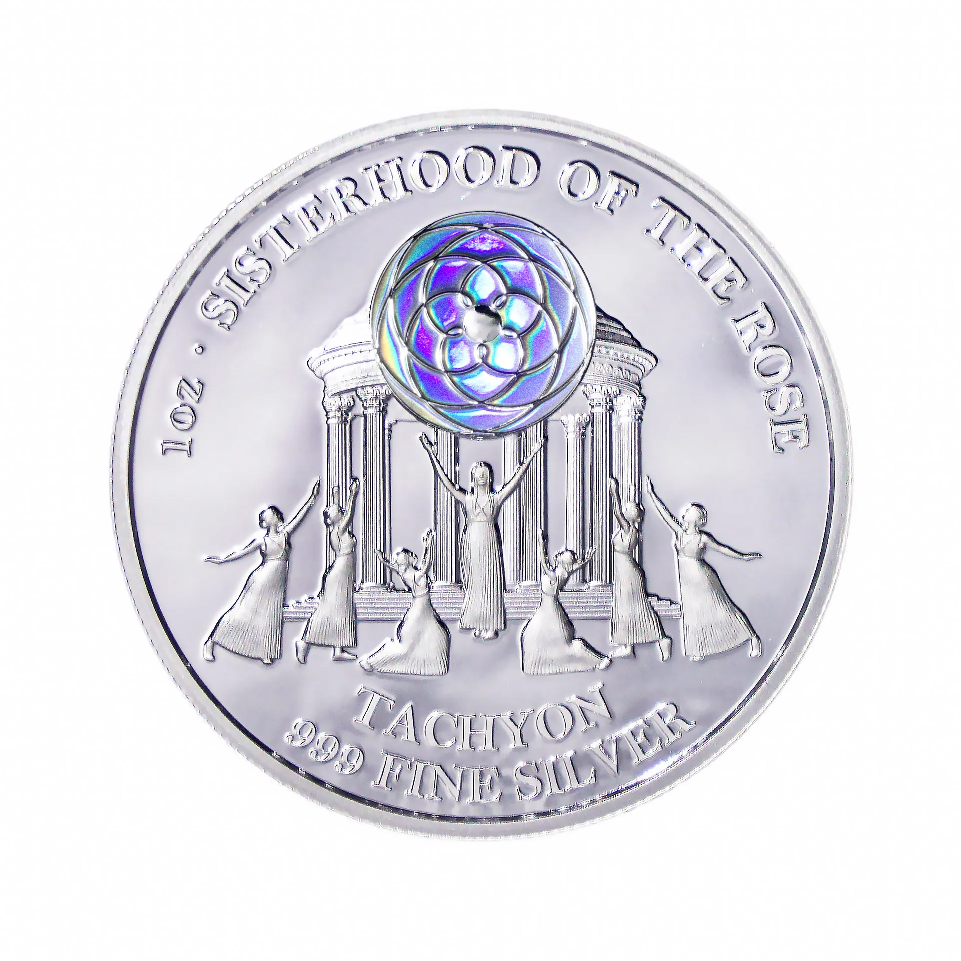 银币背面的意义,也象征着真正的蔷薇圣女团将在未将重现人间,并协助锚定女神能量来引导人类走向自由,让女神能量回归地球。