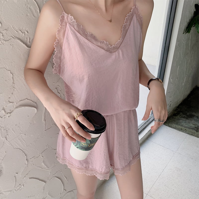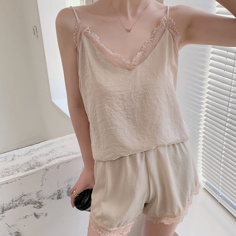 Each pajama set is meticulously designed and crafted. The lace camisole style, V-neck design, showcases the elegant curves of women. Carefully selected high-quality fabric, delicate and soft, makes wearing light and comfortable. Even in the hot summer days, you can feel the cool touch.