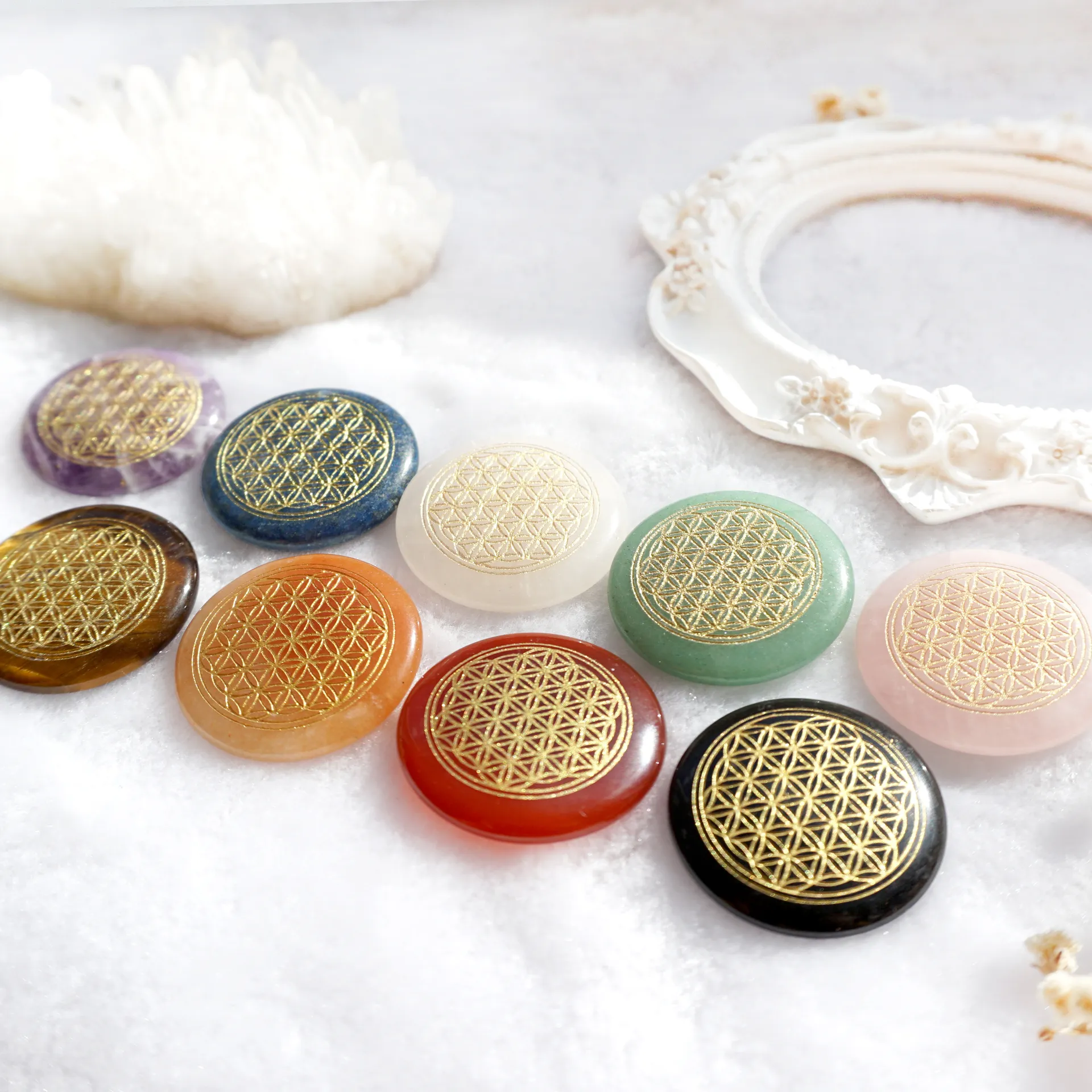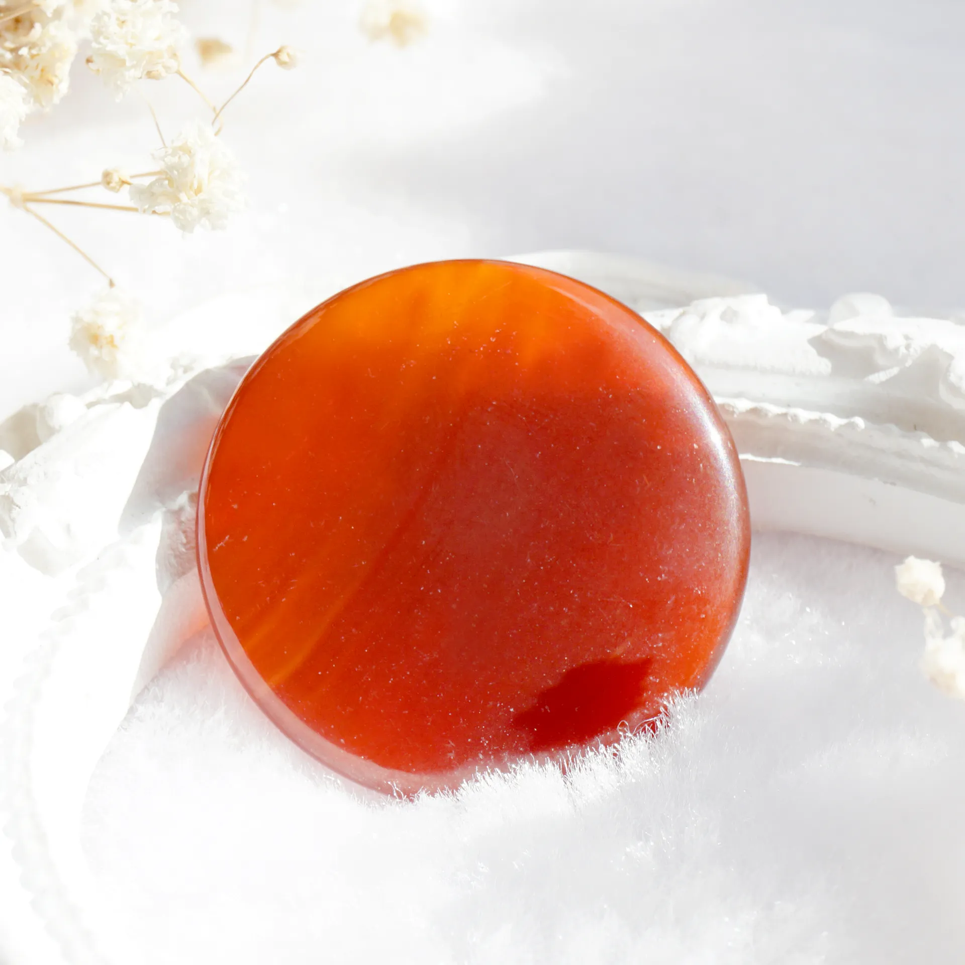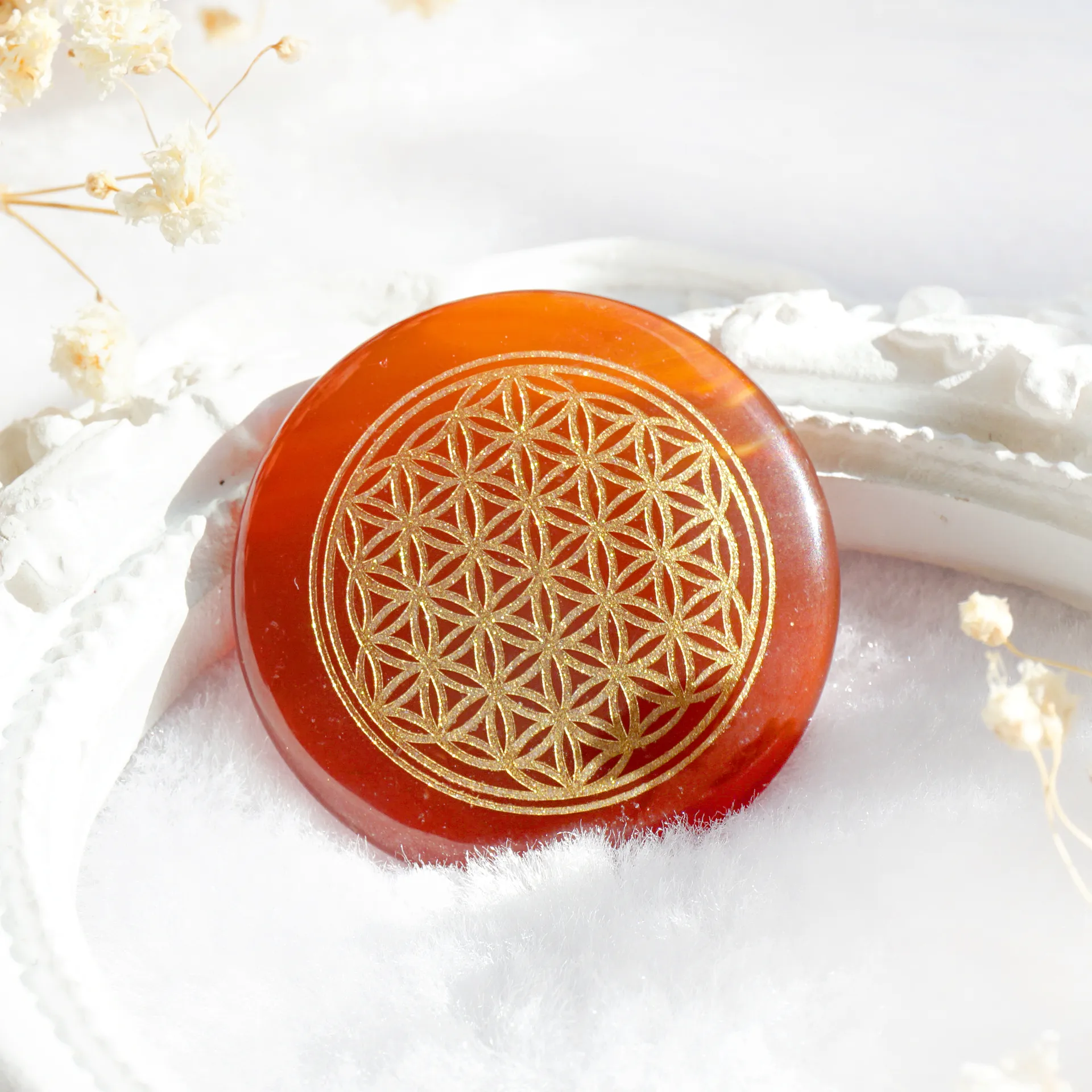 超光生命之花碟形水晶3cm – 红玛瑙(矿石脉轮珠)