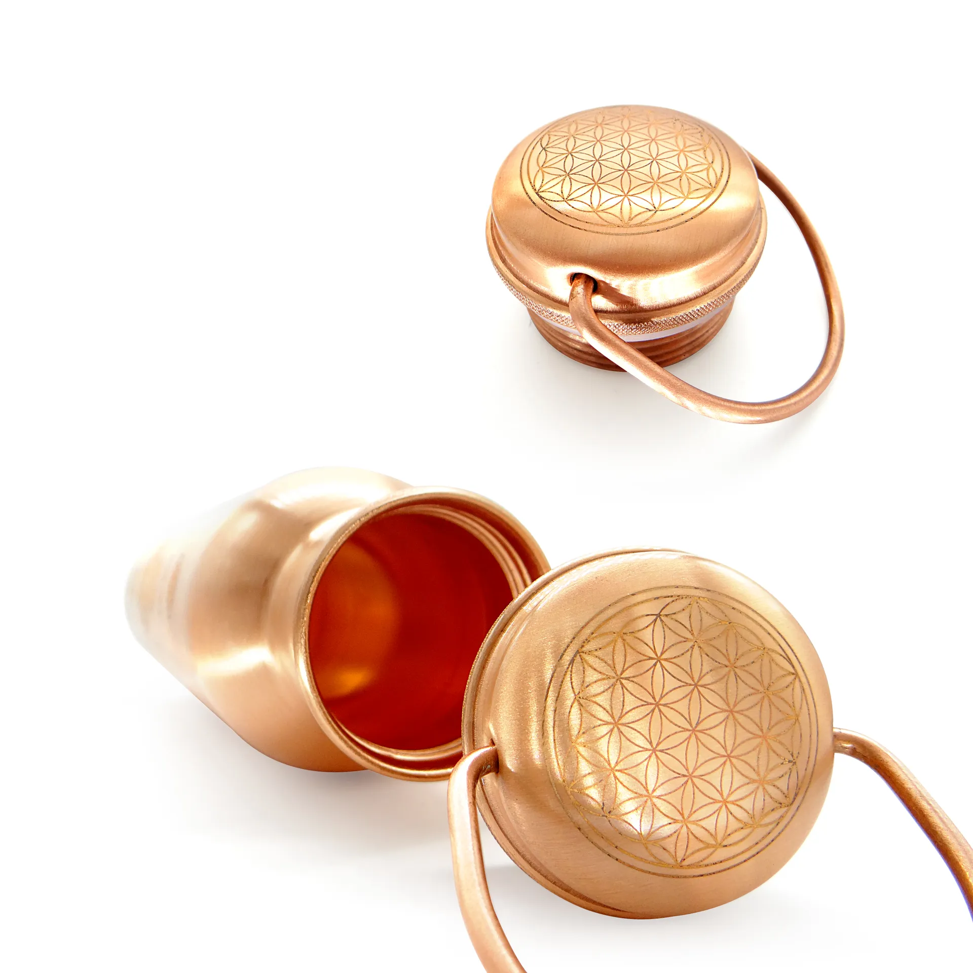 ● 生命之花能替纯铜壶带来净化、充能,并放大其能量场,带来和谐。