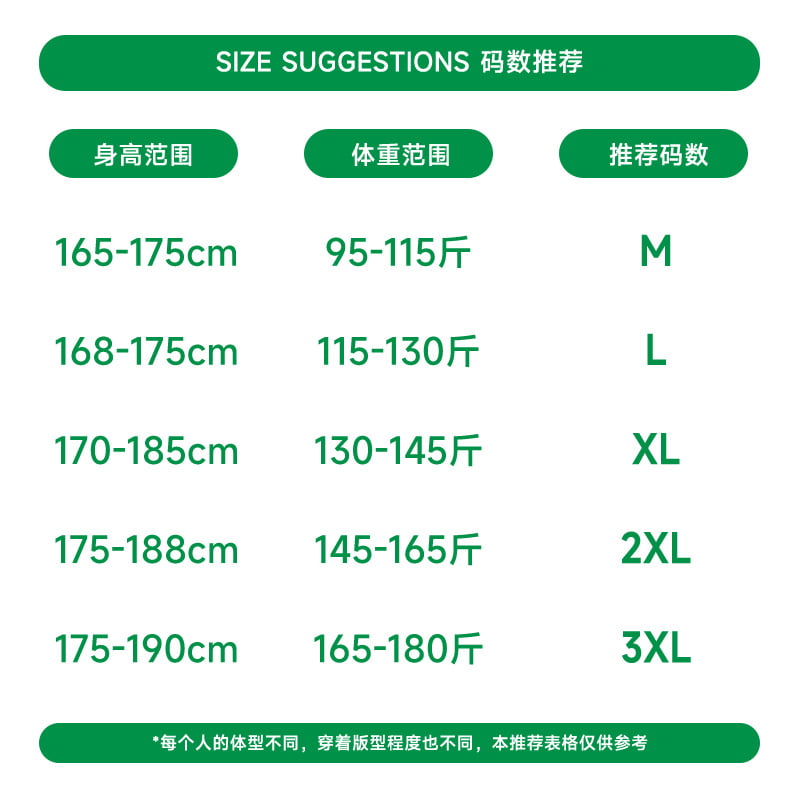 - 尺码:M, L, XL, 2XL, 3XL