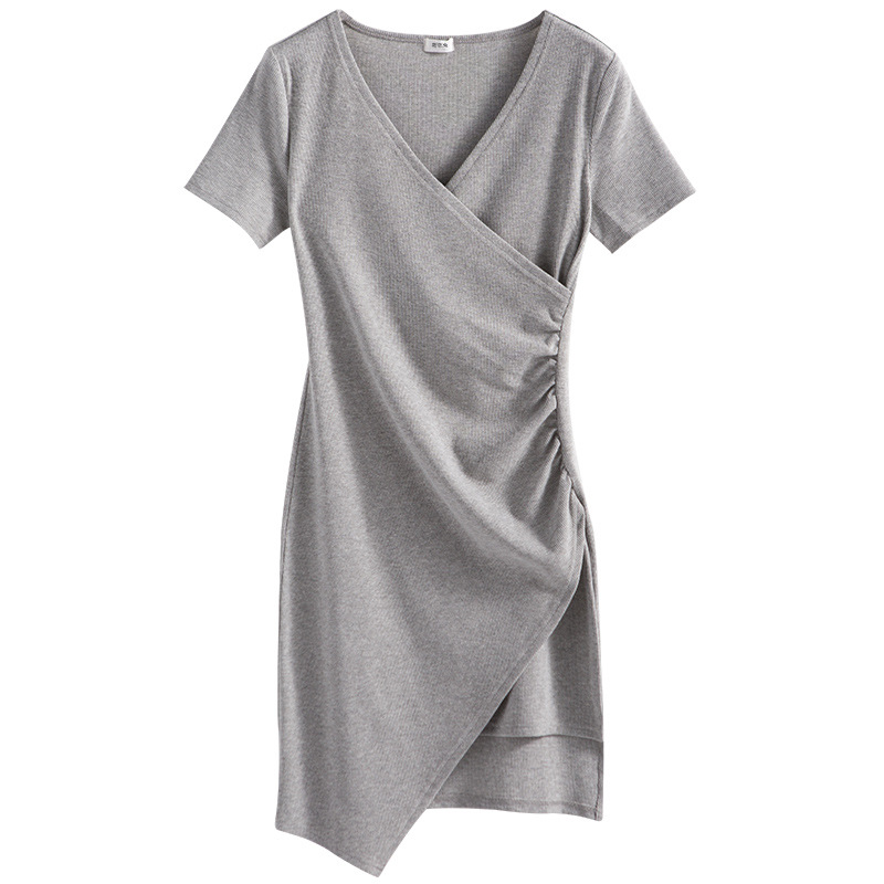 3色不规则设计下摆裙:修身显瘦,V领设计,高腰设计,多季节适用