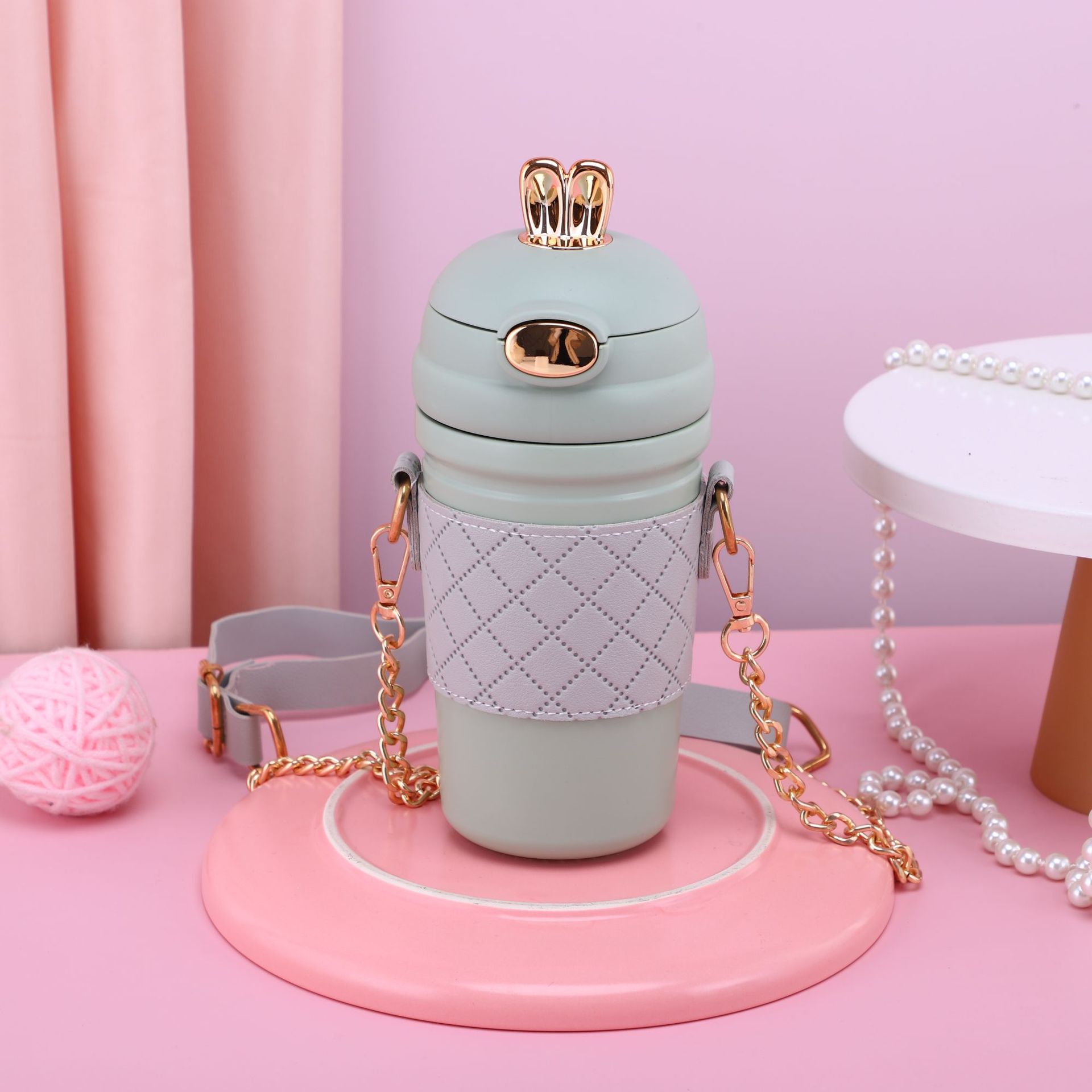 - Selling Point: Portable strap for easy carrying, made of 304 stainless steel, adorable rabbit ear straw cup, a trendy thermal cup loved by many.