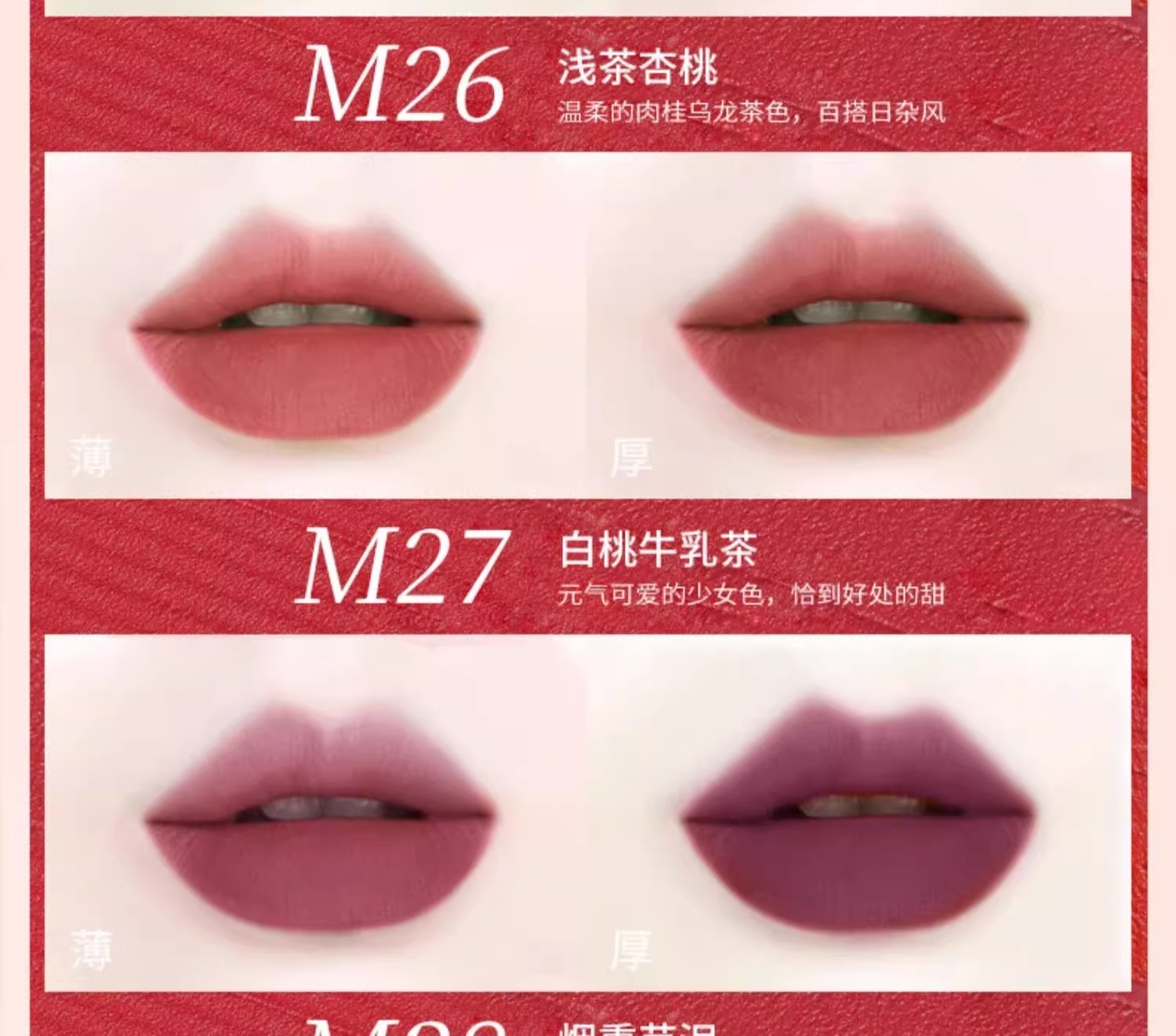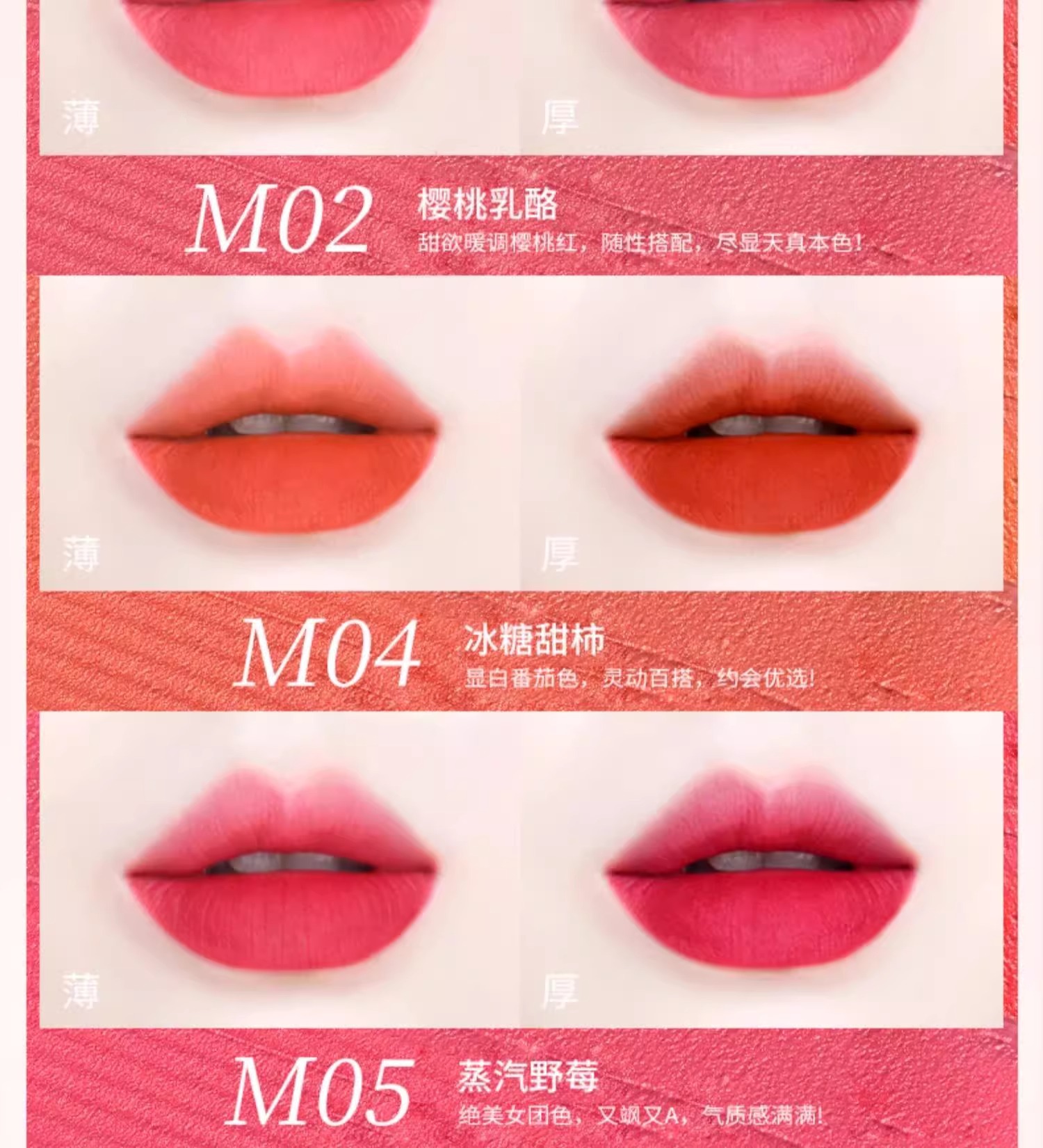2. M02-樱桃乳酪:甜欲暖调樱桃红,尽显天真本色。