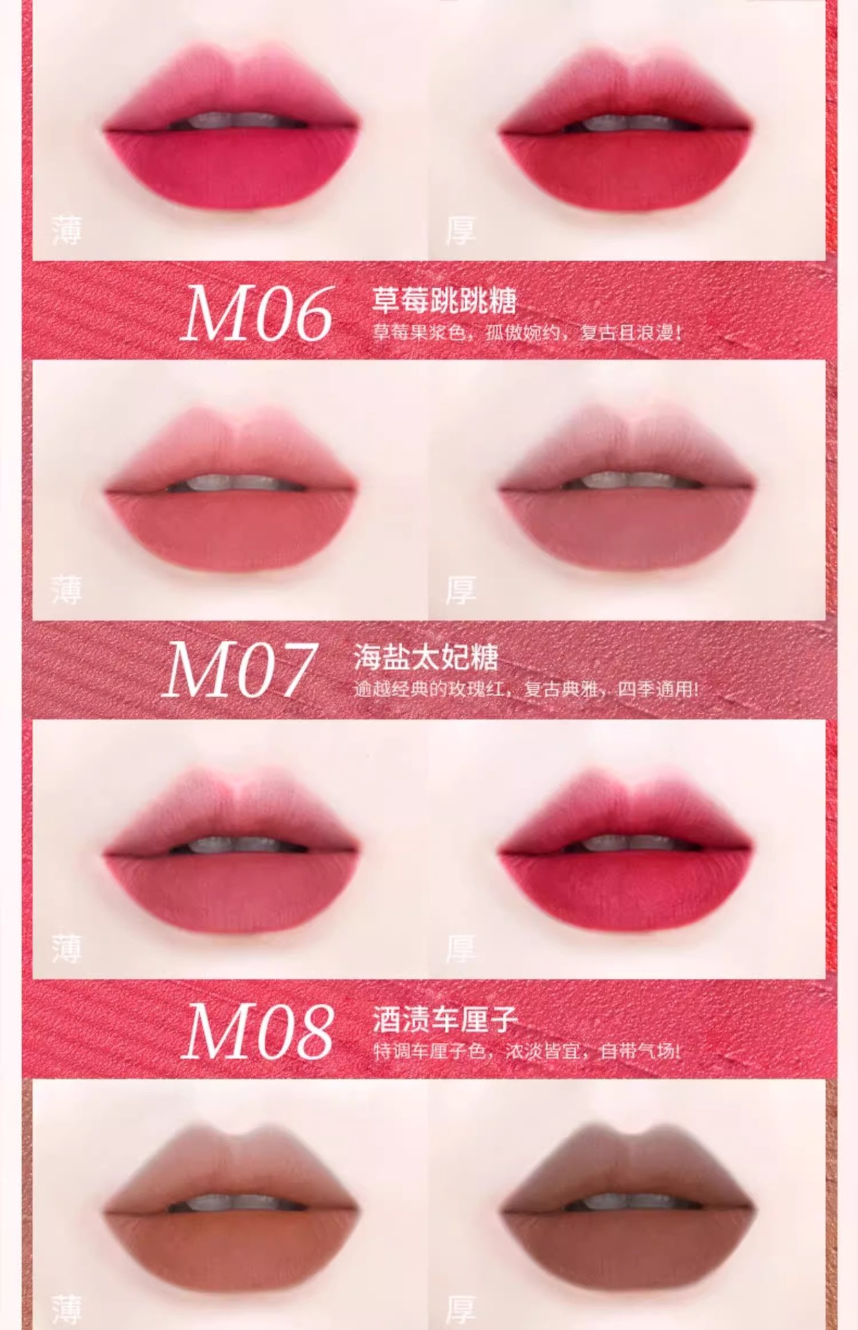 5. M06-草莓跳跳糖:复古草莓色,孤傲婉约,浪漫气质。