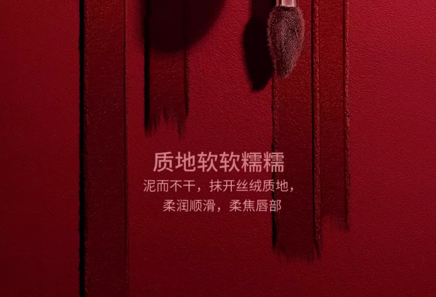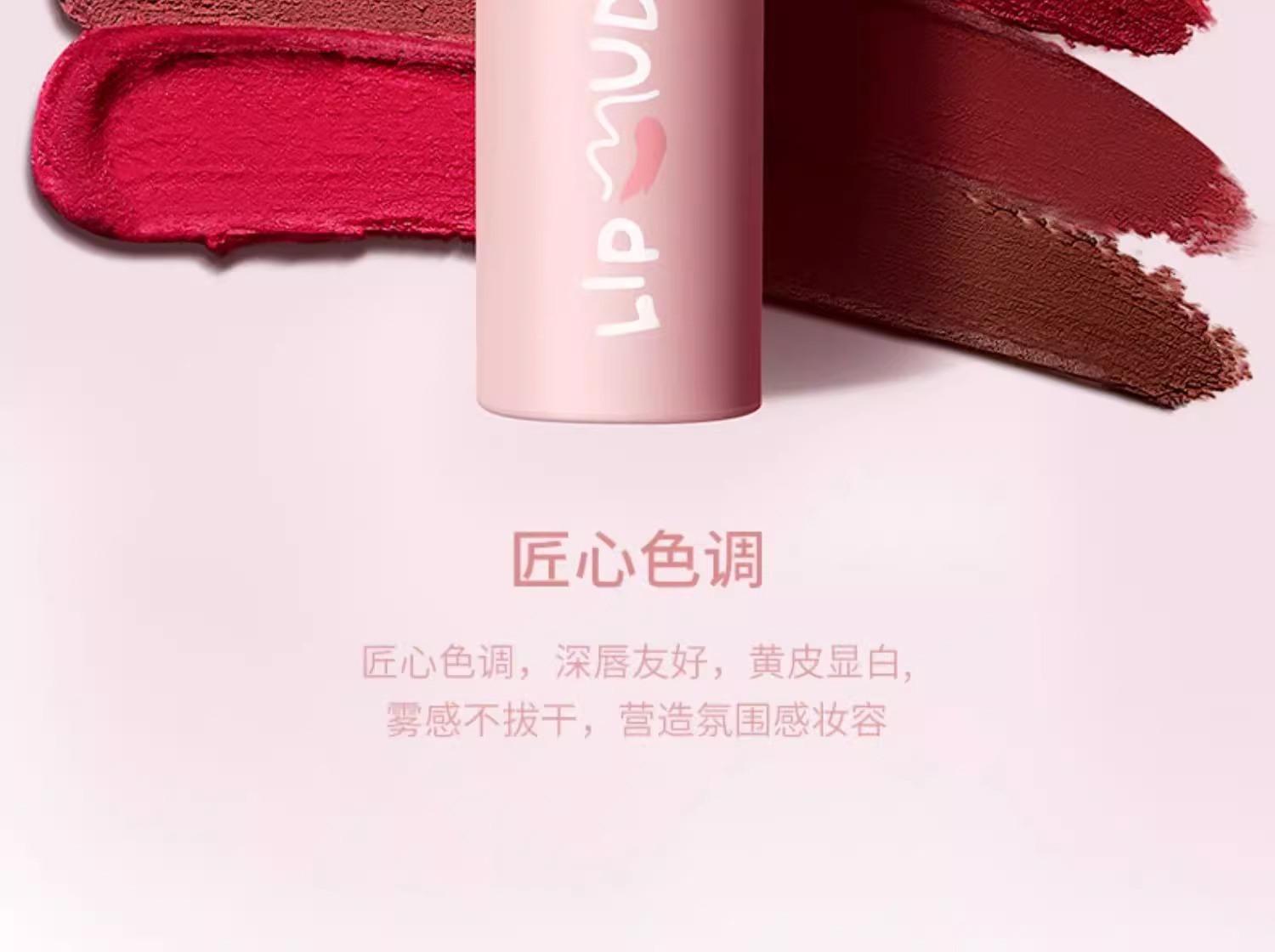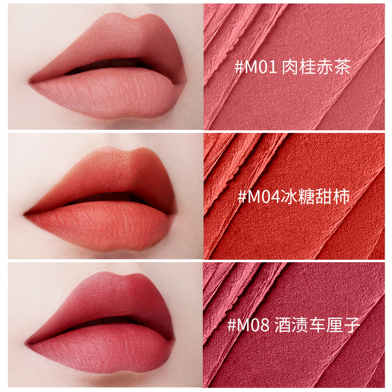 • 质地:绵密丝滑,轻薄贴合,抹开后呈现哑光雾面效果,优化唇部状态,不卡纹不拔干。