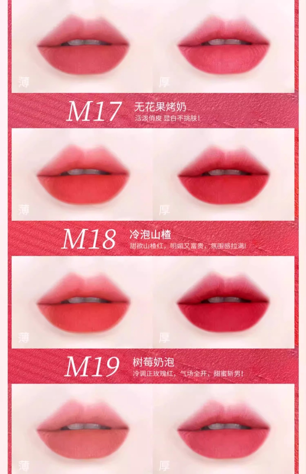 17. M19-树莓奶泡:冷调正玫瑰红,甜美气场。