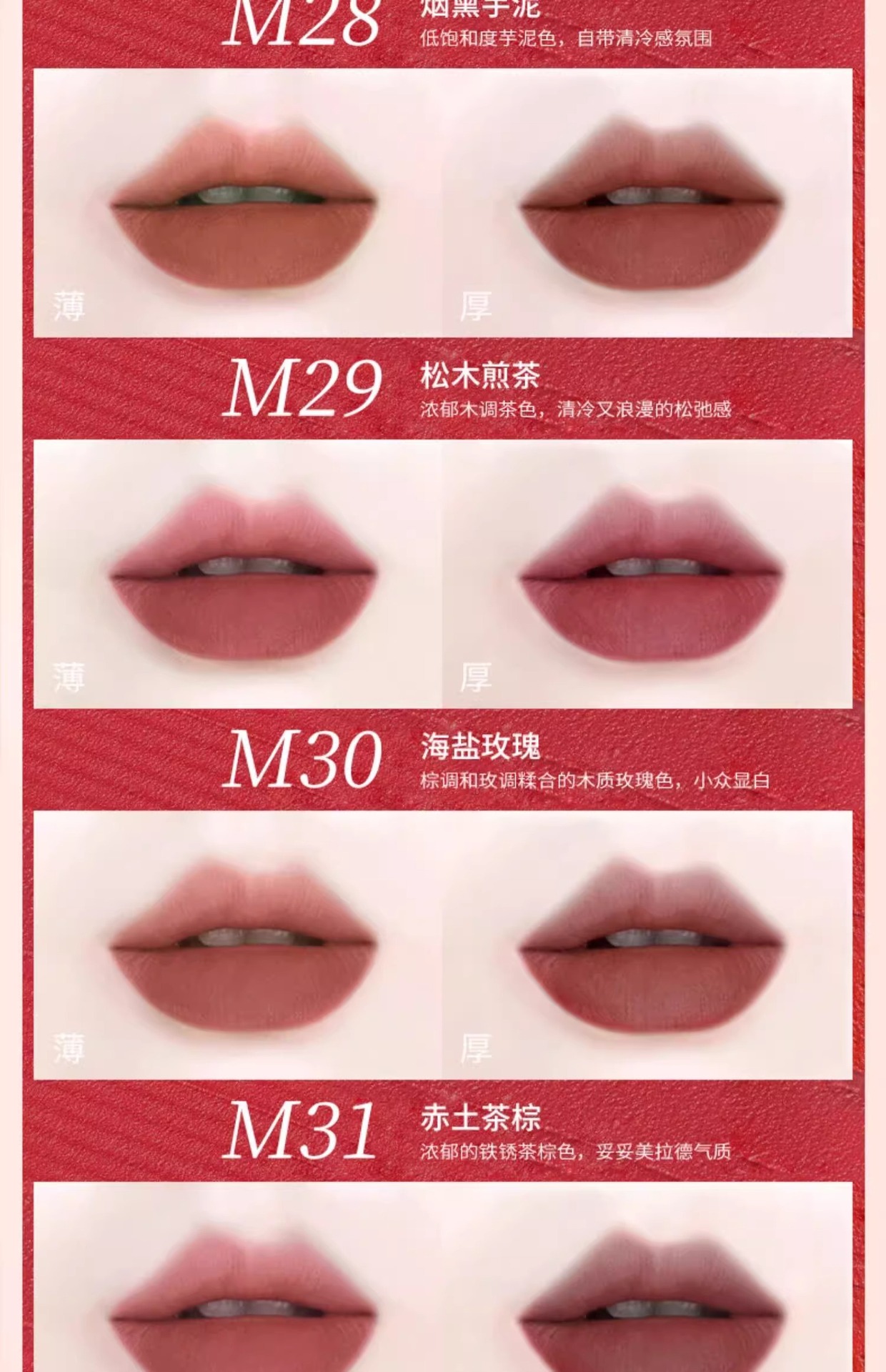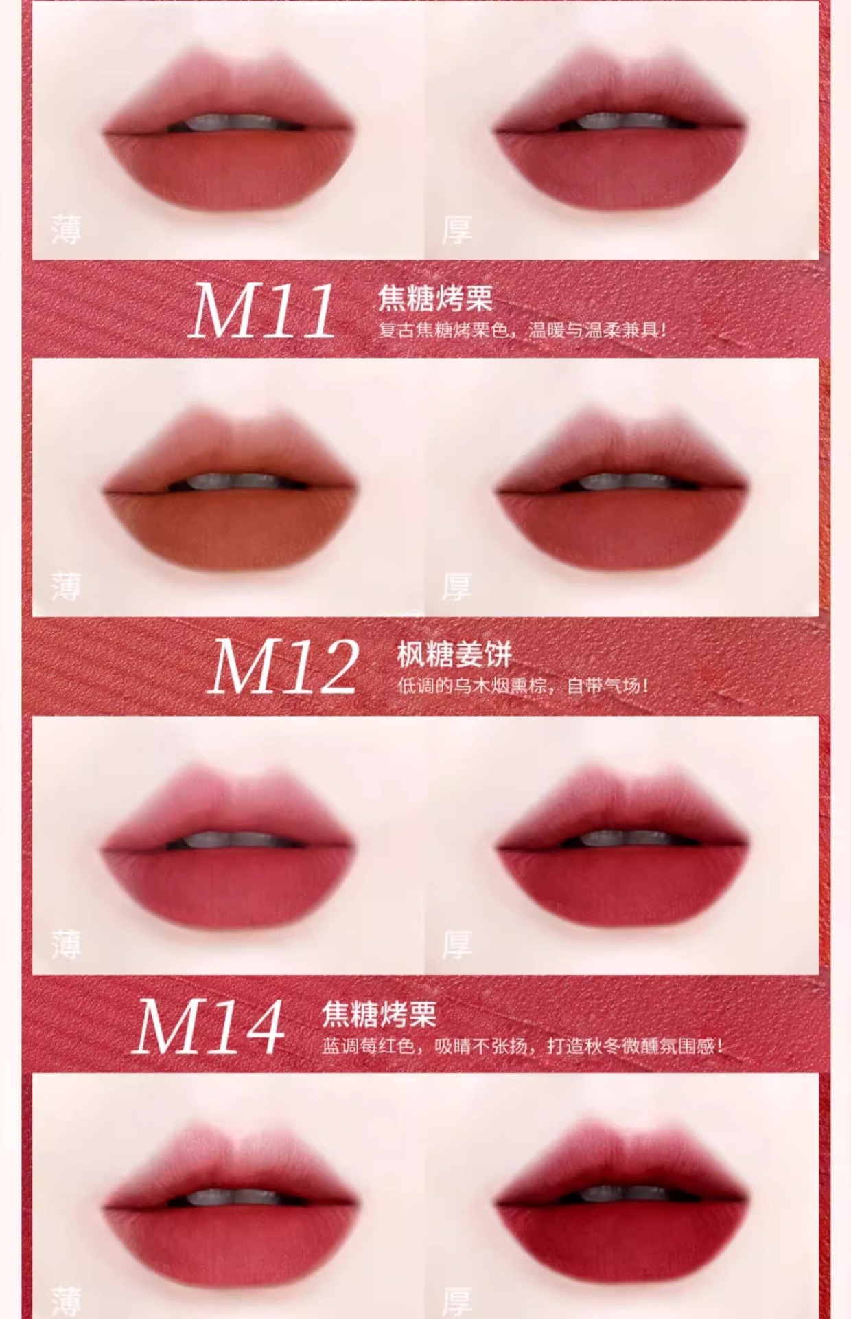 6. M07-Sea Salt Toffee: Classic rose red, timeless and elegant, suitable for all seasons.