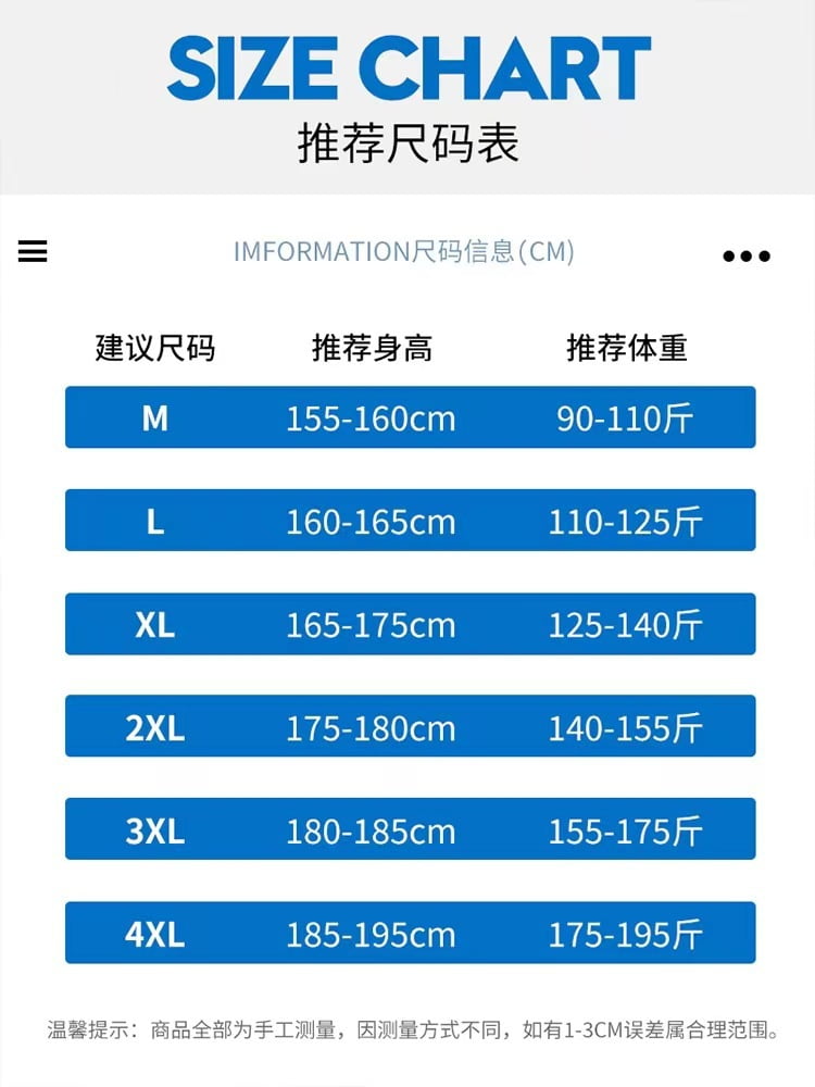 - 尺码:M, L, XL, 2XL, 3XL, 4XL