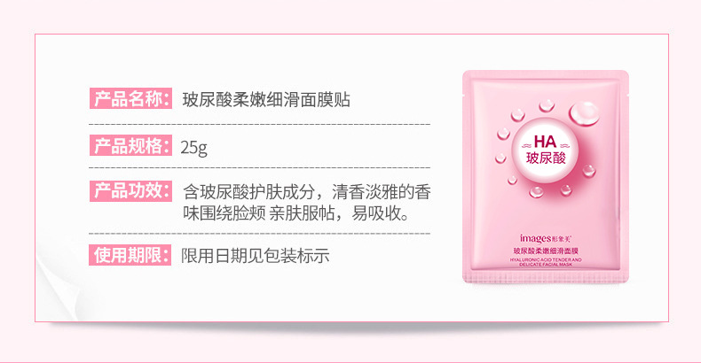 • 产品名称:玻尿酸柔嫩细滑面膜