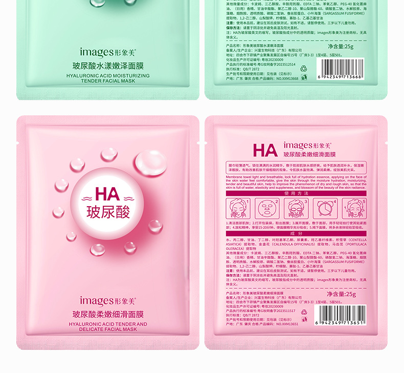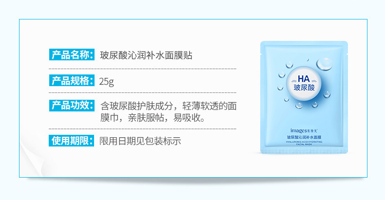 水漾嫩泽面膜(新)25g, 柔嫩细滑面膜(新)25g, 玻尿酸沁润补水面膜(新)25g, images形象美玻尿酸酵母水光面膜(新)30g, 积雪草芦荟舒润面膜(新)30g, 玻尿酸精华面膜25g, 玖美堂清滢面膜30g, 玻色因多肽嫩颜面膜(新)30g