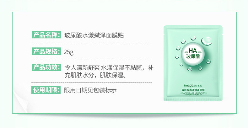 • 产品名称:玻尿酸润泽精华面膜