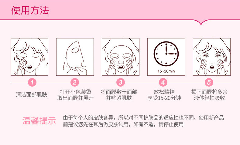 • 功效:紧致肌肤、塑造V脸轮廓,补水保湿,改善干燥肌肤
