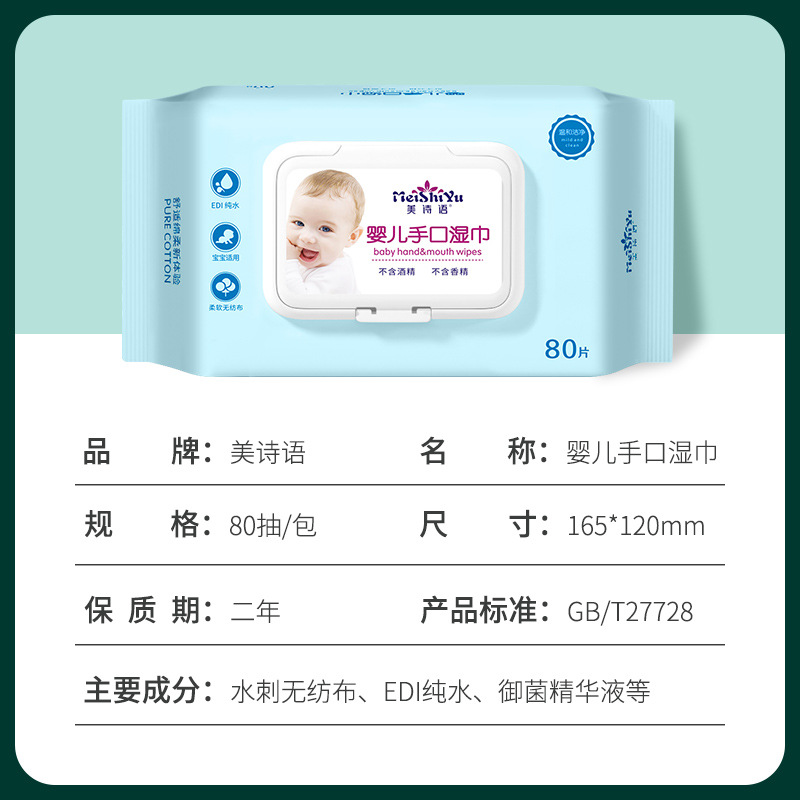 - 80抽婴儿手口湿巾: 165*120mm