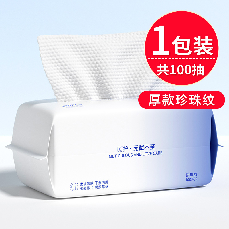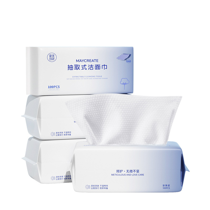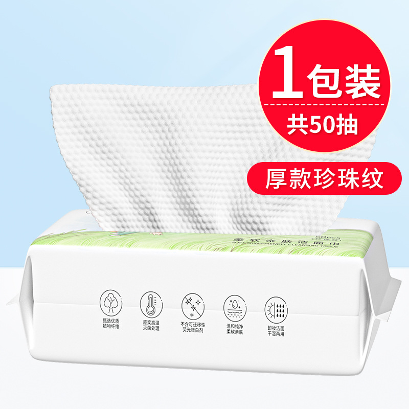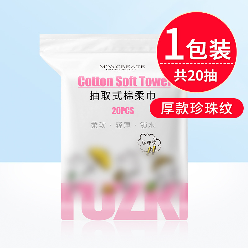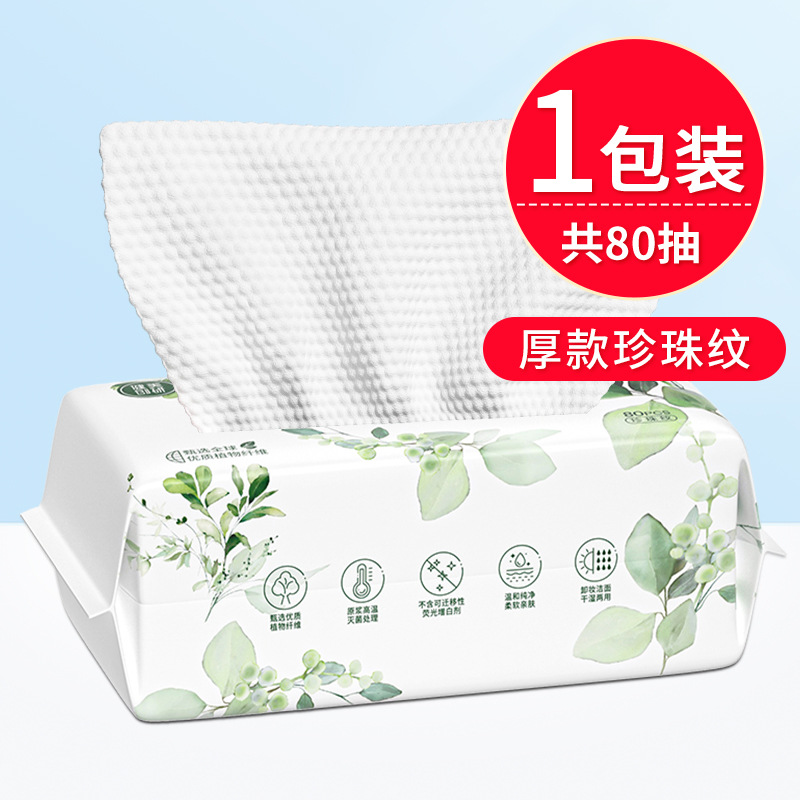- 抽取式棉柔巾,采用100%植物原纤维,触感柔软亲肤,适合各类肌肤使用。