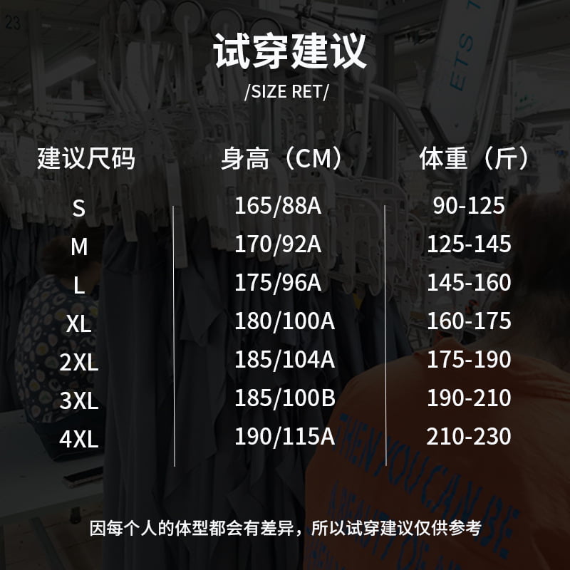 我们提供从S码到4XL码的多种尺码选择,为您打造合身舒适的穿着体验。无论您身材如何,都能找到最适合您的尺码。