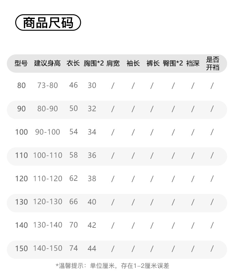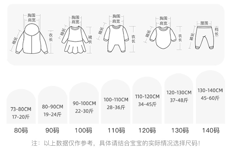 *Note: Size recommendations are for reference only. Please choose based on your child’s actual measurements. Size deviation of 1-2 cm may occur.