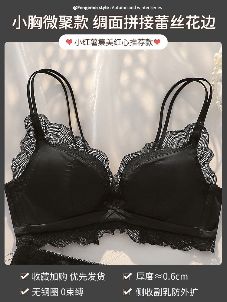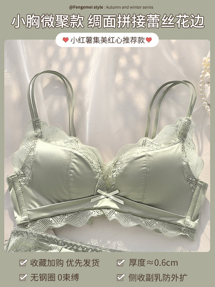 Made with natural active latex inner material and modal cups, the soft and breathable material gives you a feeling of being gently cared for and comfortable. The shallow cup design ensures perfect wrapping for small chests, eliminating the problem of empty cups, while the lace edge design adds a sweet touch.