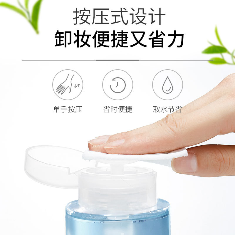 - 按压出水用量可控,懒人按压式瓶口设计,单手可卸妆,干净省量。